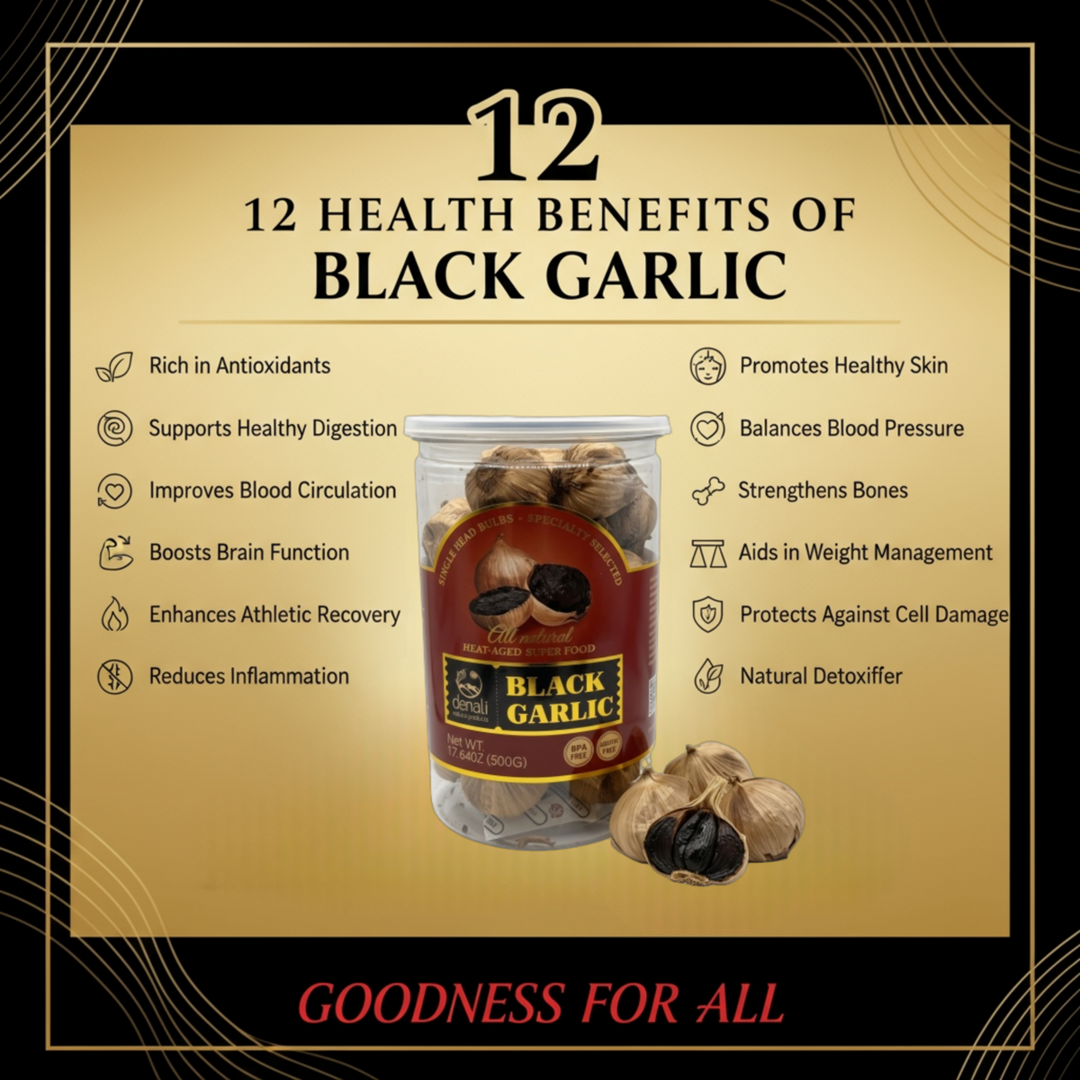 Black Garlic 17.64 Oz (500G) Whole Black Garlic Denali Sports Fermented Super Foods, Non-GMOs, Non-Additives, High in Antioxidants, Ready to Eat